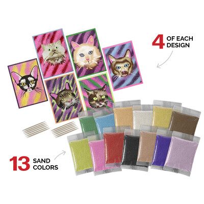 ArtiSands Coloring with Sand Bulk Kit, Cat Portraits (Makes 24)