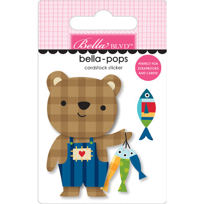 Bella Pops 3D Cardstock Sticker, Bearly Fishing