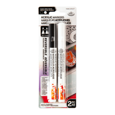 Acrylic Paint Markers Set, 2.0mm Reversible Round/Chisel - Black & White (2pc)