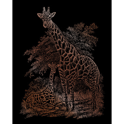 Engraving Art, Copper - Giraffe & Baby