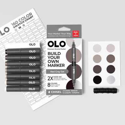 Chisel Marker Set, Red Gray (8 Colors)