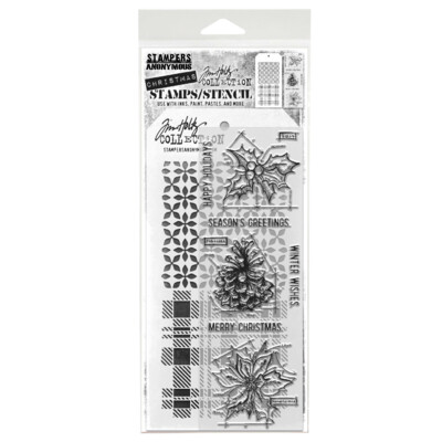Mixed Media Clear Stamp/Stencil, Festive Collage